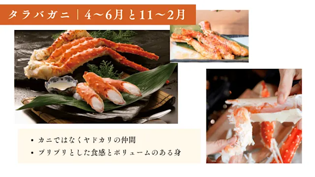 タラバガニの旬は4~6月と11~2月 -